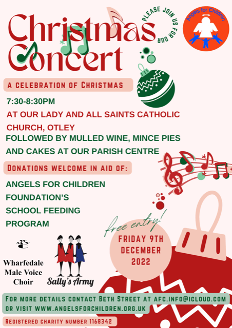 Sally’s Army was delighted to support the inspiring work of choir member Beth Street’s foundation Angels for Children, with a concert at Our Lady and All Saints Church in Otley in partnership with the Wharfedale Male Voice Choir on December 9th